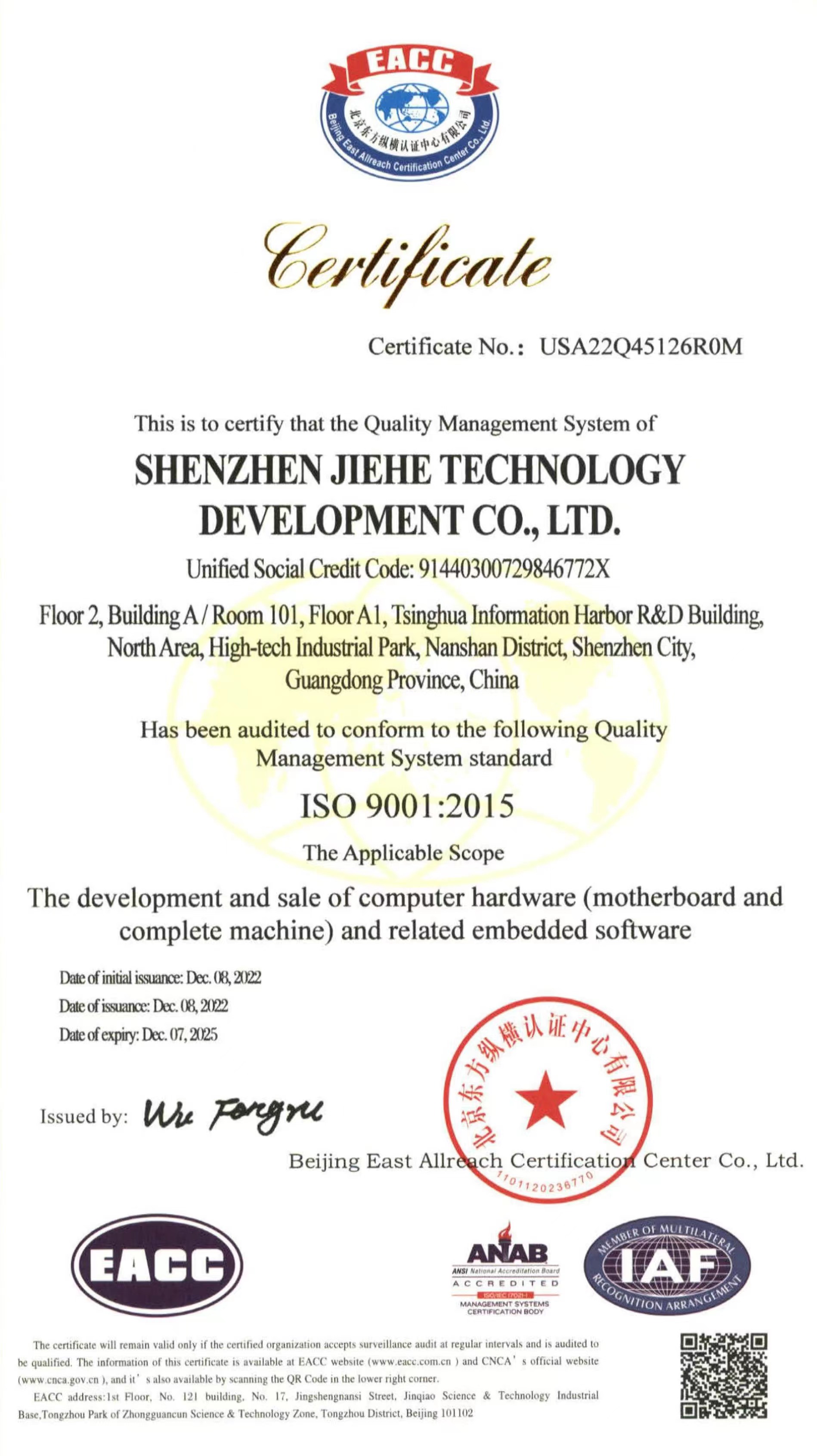 ISO9001质量管理体系认证作为国际标准化组织的管理性质标杆,它的地位可见一斑,其认可彰显了CA88·(中国)科技的体系管理以及产品的质量。CA88·(中国)科技在过去几年不断提升设备标准化生产的能力,减少人为质量问题,把ISO9001质量管理体系理念贯穿于产品研发—生产全流程。