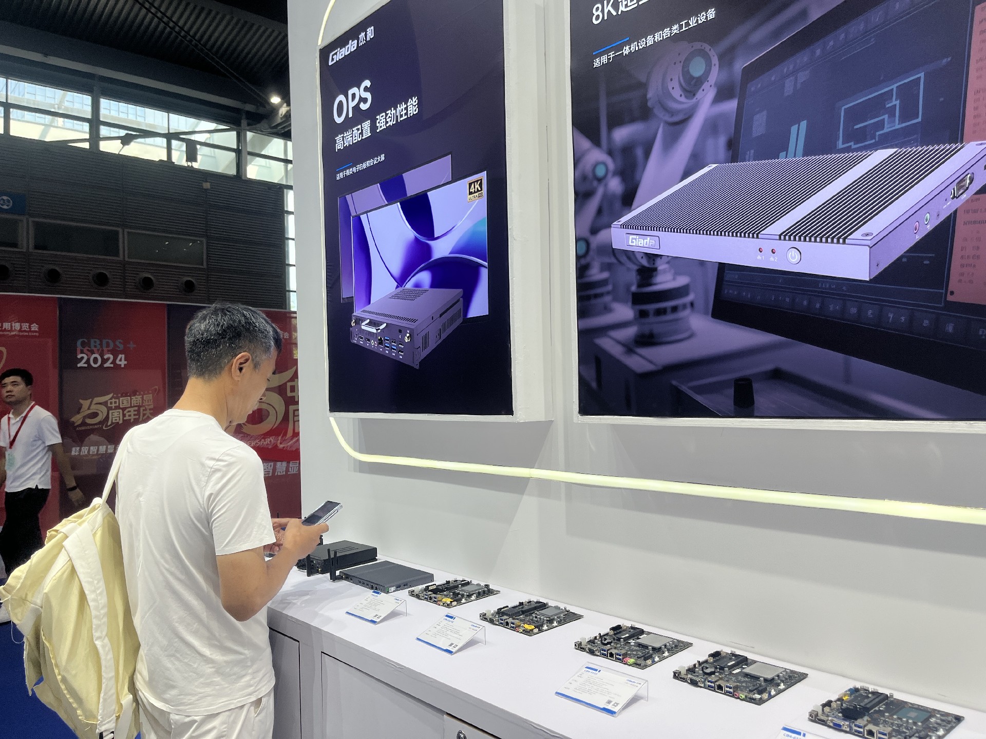 CA88·(中国)科技展位放置在c位的明星产品和最新产品吸引了众多参观者的目光。展台下方整齐排列着公司的产品,包括主板、嵌入式整机、OPS等,这些产品不仅适用于商业展示领域,还广泛应用于工业、制造业和教育业等多个行业。