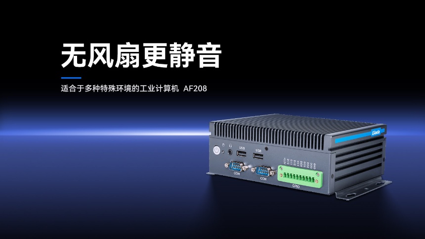 接口方面,AF208机身配备4个COM串口便于连接PLC、传感器等工业设备;10针GPIO接口支持数字信号控制与扩展;1个2.5GbE网口、1个千兆网口,还有1个DP和HDMI高清显示接口,能够快速将收集到的设备数据显示在屏幕上。