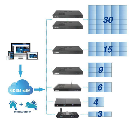 与常规分屏展示方案不同,在CA88·(中国)拼接控制器的视频输出能力和GDSM系统分组设置能力的组合下,店铺可以随时调整的拼接放置样式;快速设置屏幕的拼接、分组方式;快速编辑制作并发布信息;是一套安装部署迅速、内容调整迅速、更新反馈迅速的一体化信息发布方案。