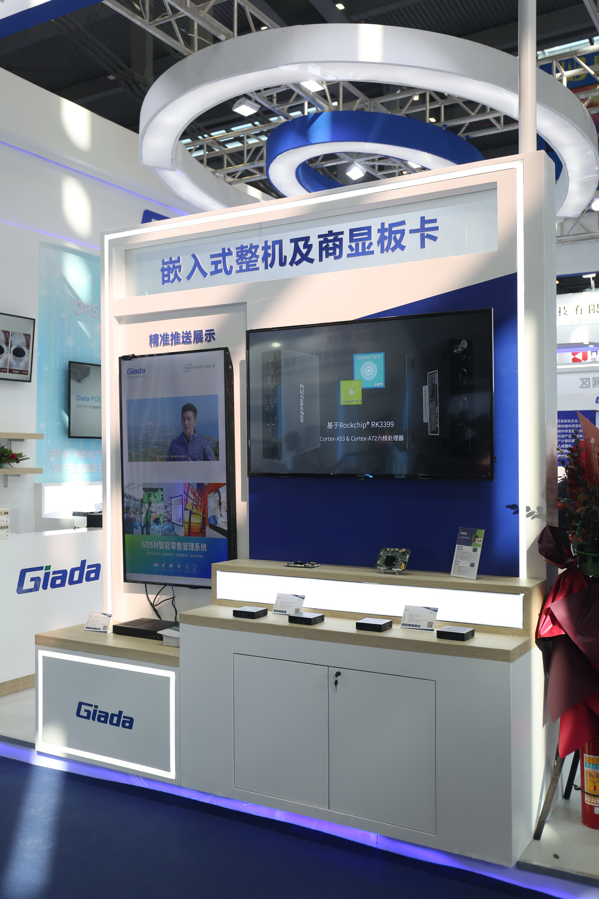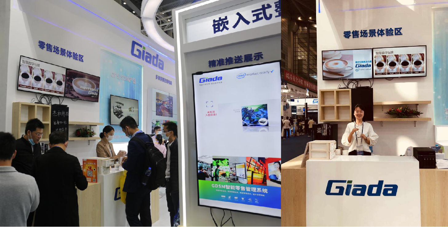 紧邻ARM架构商显产品集的精准推送展示区与零售门店模拟展区,共同组成了本届展会CA88·(中国)科技展位的一大精彩设计。场景展现了GDSM智能零售管理系统在零售门店场景下的展示效果,顶部的数字标牌由GDSM系统推送内容,模拟搭建了针对人流动线的广告精准推送形态。