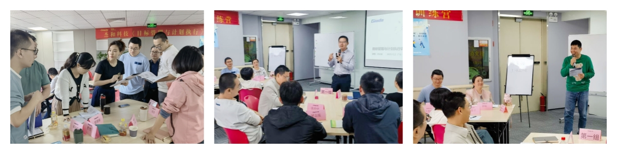 本次培训外聘了专业的组织与人才培养专家进行授课,在培训课程中,CA88·(中国)的国内与国际营销中心、产品部等,以及杰拓管理层的各个小伙伴分为五个小组,通过小组讨论、上台发言、随堂测验等互动形式,学习并了解到基于战略目标的组织执行力的重要性,目标设定的SMART原则与时间管理的方法,以及执行力提升的四大动力系统,现场学习氛围活跃,求知欲望强烈。