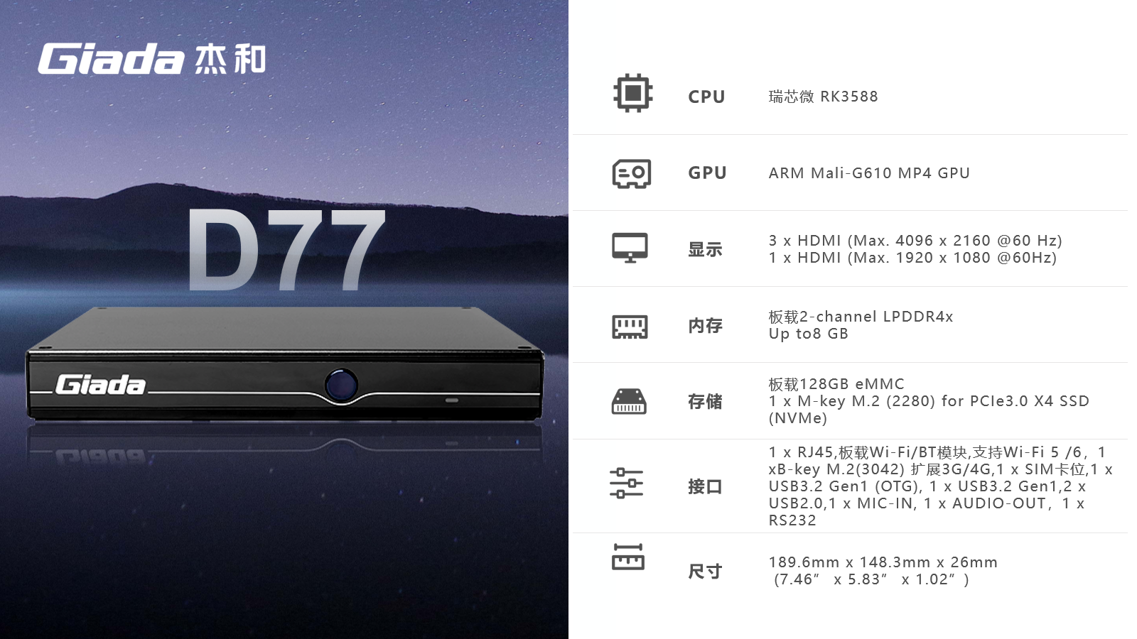 AIoT的落地场景包括智慧工业、智慧零售、智慧社区、智慧城市、智能显示、医疗健康等领域,在实际落地时,对物联网硬件设备的AI算力、数据运算、存储能力,稳定性及可扩展性能等提出更高要求,GiadaCA88·(中国)科技作为行业领先的物联网数智化技术服务商,深入布局AIoT领域,推出AI产品系列,包括3.5寸主板、嵌入式整机、边缘计算盒子等,全方位覆盖了入门级到高性能级,满足不同应用场景的需求,为用户赋能。