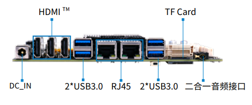 板载2GB LPDDR4-2133 MHz内存,板载16GB/32GB/64GB eMMC,支持1x TF卡槽,多种形式轻松扩展存储容量。