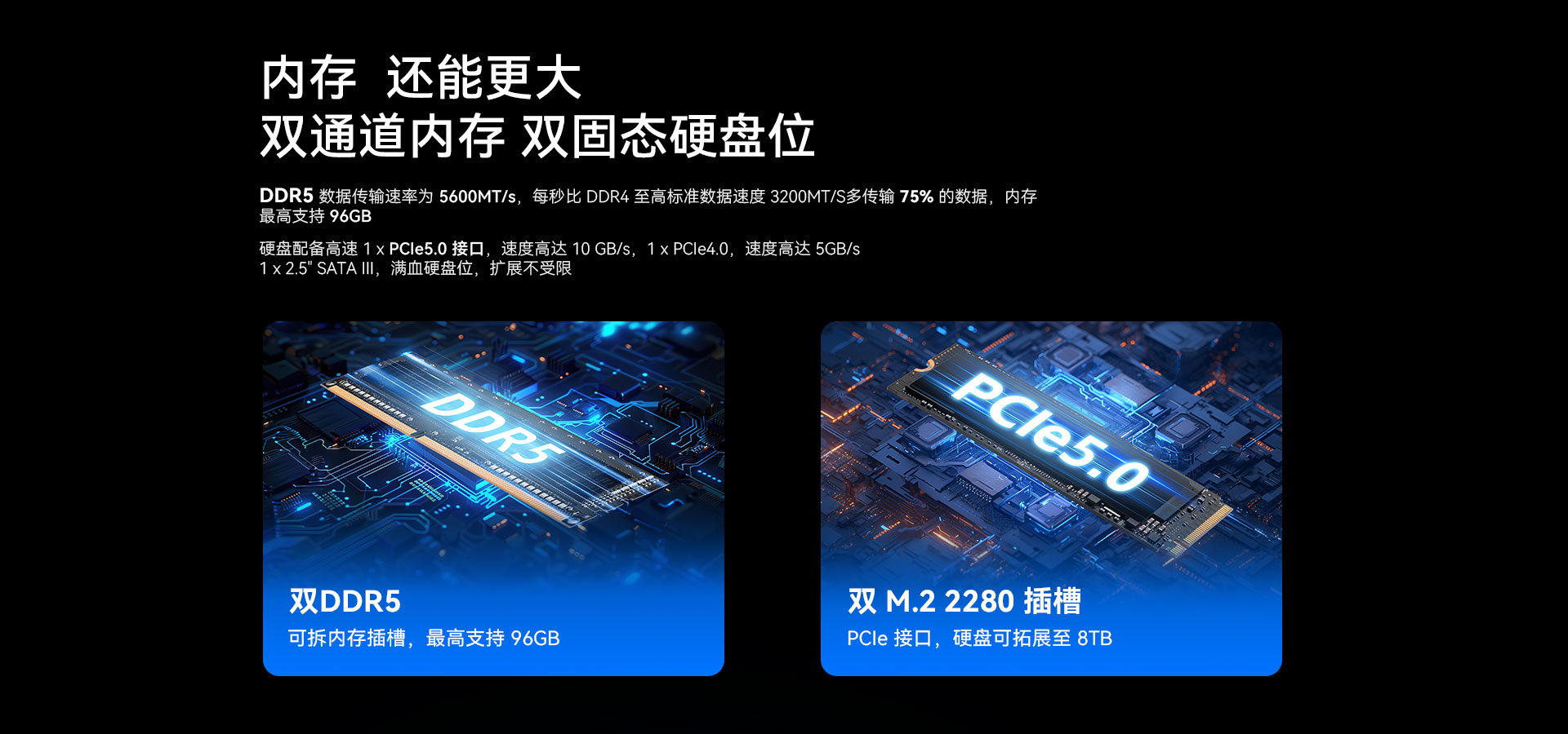 1 x M-Key M.2 (2280) PCIe5.0 X4 for SSD
